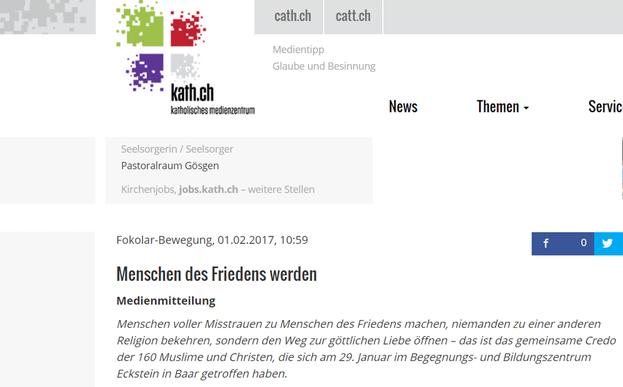 Medienmitteilung der Fokolar-Bewegung vom 1. Februar 2017