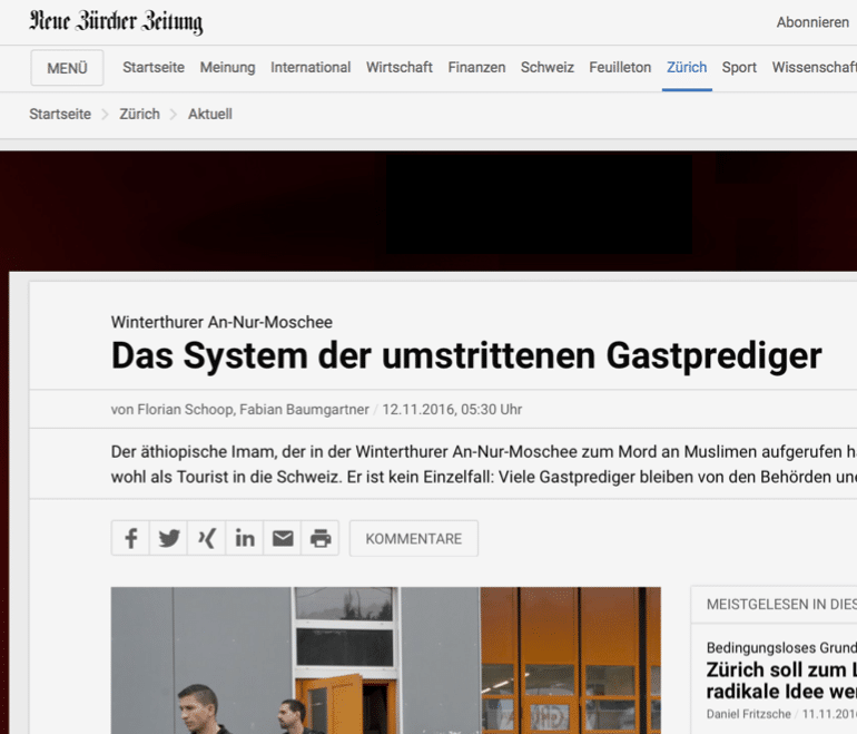 "[...] Die Meldung rast am 19. Dezember um den Globus: Schießerei in einer Zürcher Moschee. Drei Verletzte. Polizei vor Ort. Täter auf der Flucht. DasZurich shooting ist die Top-News auf allen Kanälen. Selbst der zukünftige US-Präsident Donald...