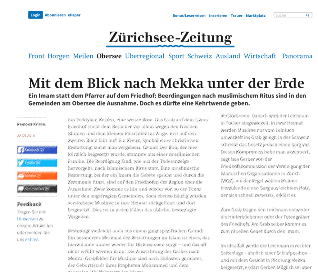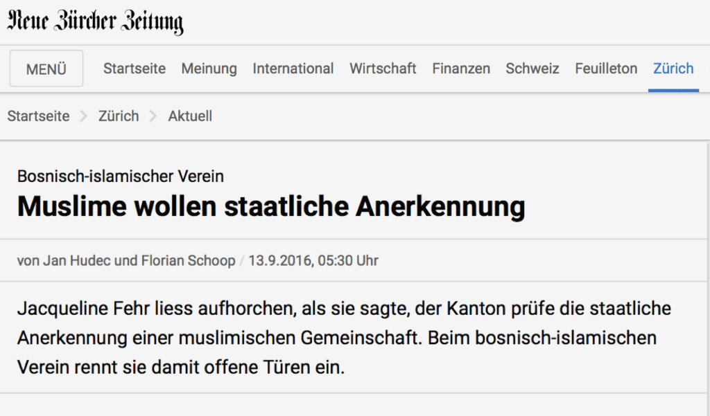 Imam Muris Begovic im Interview mit La Liberté über die voraussichtliche Schliessung der An’Nur Moschee in Winterthur. "L’Association des organisa- tions musulmanes à Zurich (VIOZ), dont An’Nur est membre, ne voulait pas non plus commenter la nouvelle. «Nous avons...