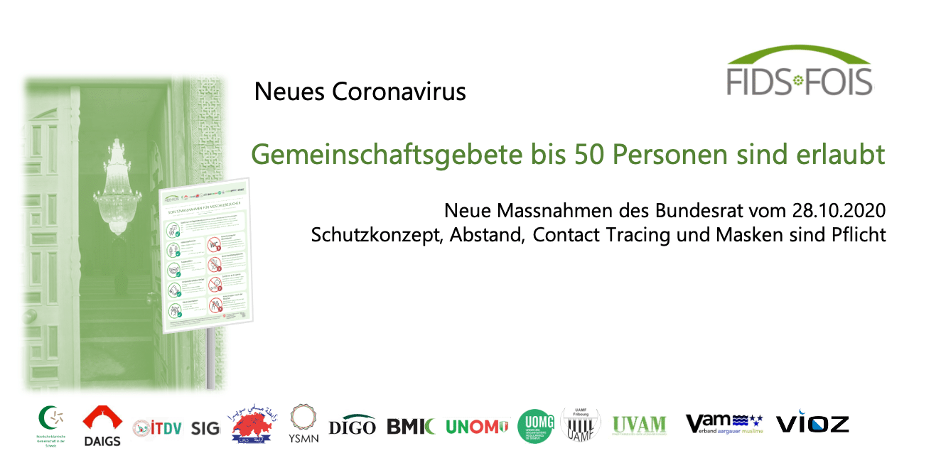 Wichtig zu beachten bleibt weiterhin, dass zwischen den Gebeten die Räumlichkeiten desinfiziert werden müssen. Abstand, Contact Tracing und das Tragen der Schutzmaske muss weiterhin umgesetzt werden.