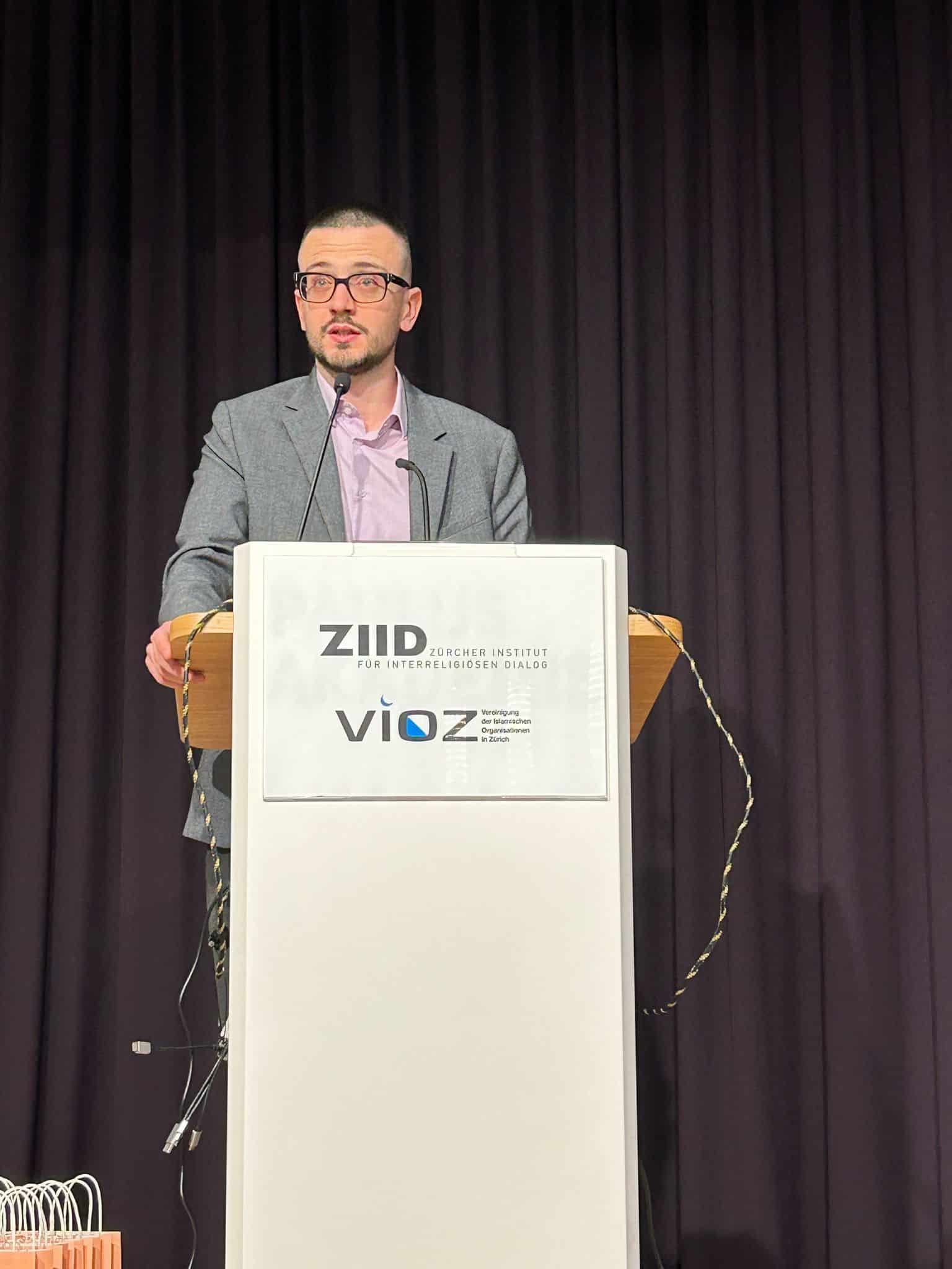 Nach den herzlichen Grussworten von Regierungsrätin Jacqueline Fehr, VIOZ-Präsident Abduselam Halilovic, QuaMS-Präsidentin Rifa’at Lenzin und ZIID-Stiftungsratsmitglied Arthur Braunschweig, bereicherte Imam Benjamin Idriz den Abend mit einem spannenden Vortrag und neuen und kreativen Impulsen für ein zeitgemässes Koranverständnis.