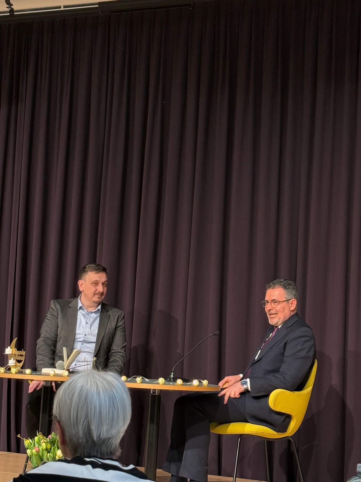 Das anschliessende Gespräch zwischen Muris Begovic (Imam & Geschäftsleiter VIOZ/QuaMS) und Benjamin Idriz bot Raum für aktuelle Fragen zum Islamdiskurs und regte zum Nachdenken an.