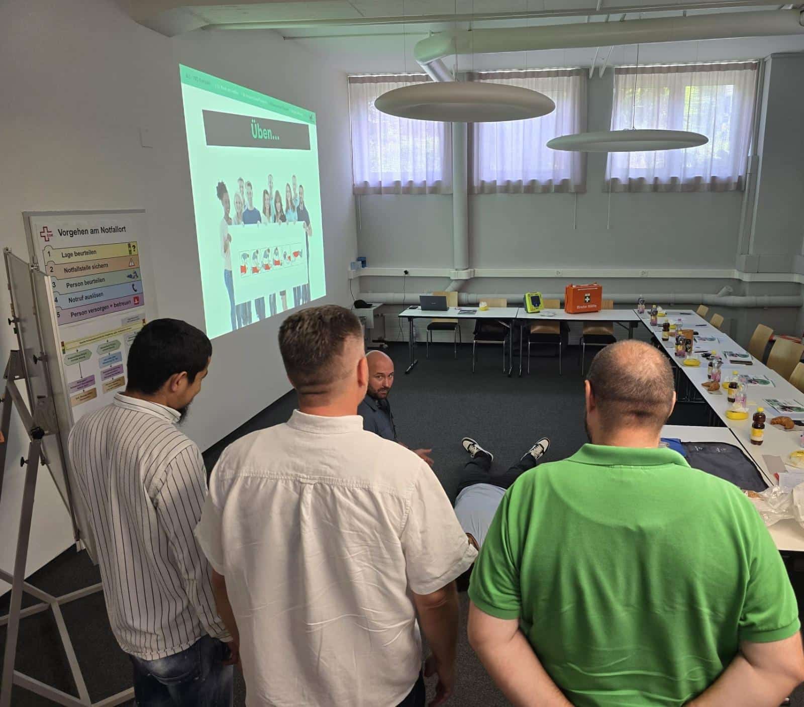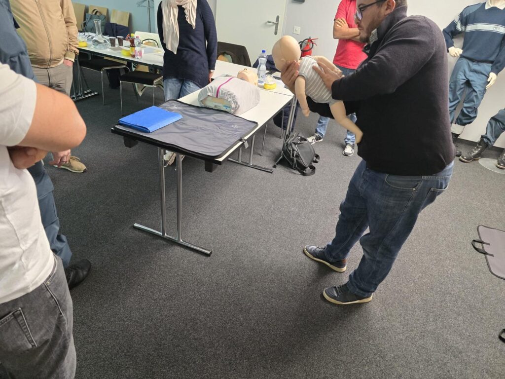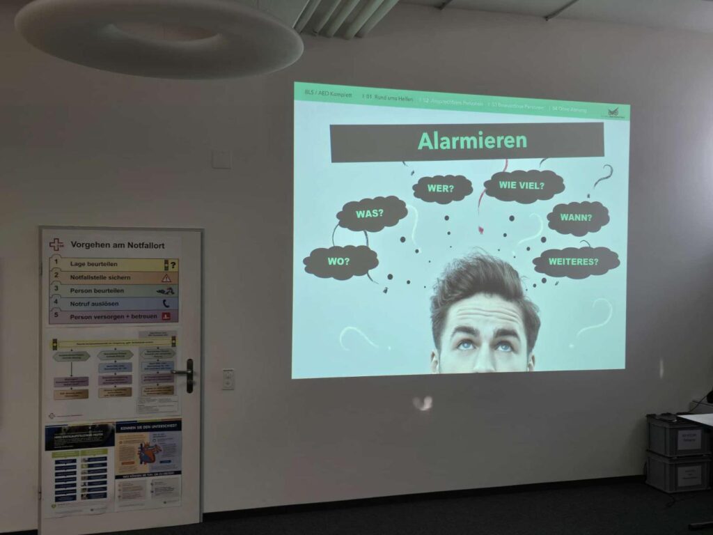 Das Programm umfasste die Handhabung des Defibrillators, die Erkennung von Notfällen, das richtige Alarmieren und praktische Beispielübungen. Die Teilnehmer konnten ihr vorhandenes Wissen wieder auffrischen und ebenso neue Methoden lernen, die sie gleich üben konnten.