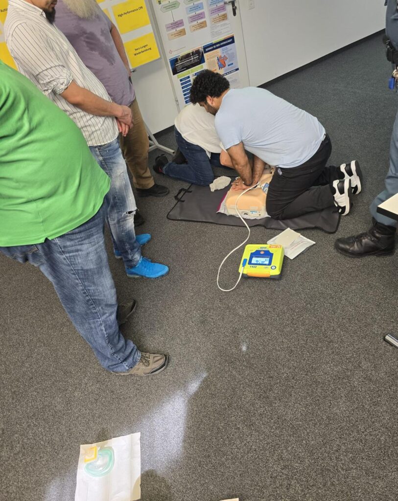 Ersthelfer können im Ereignisfall Menschenleben retten, ob im öffentlichen Raum, zuhause oder in der Moschee. Am vergangenen Samstag fand der dritte von insgesamt sechs geplanten Kursen (BLS/AED/SRC) statt.